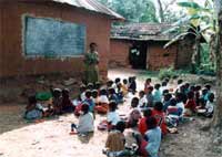 The children are grouped by ability and taught by (usually) 2 teachers in the subjects of math, reading, writing, English, agriculture, health/hygiene and playing. The teachers give their lessons ex-cathedral, which can be very hard and tiring for the children, especially as the temperatures rise to unbearable highs after 10 a.m..